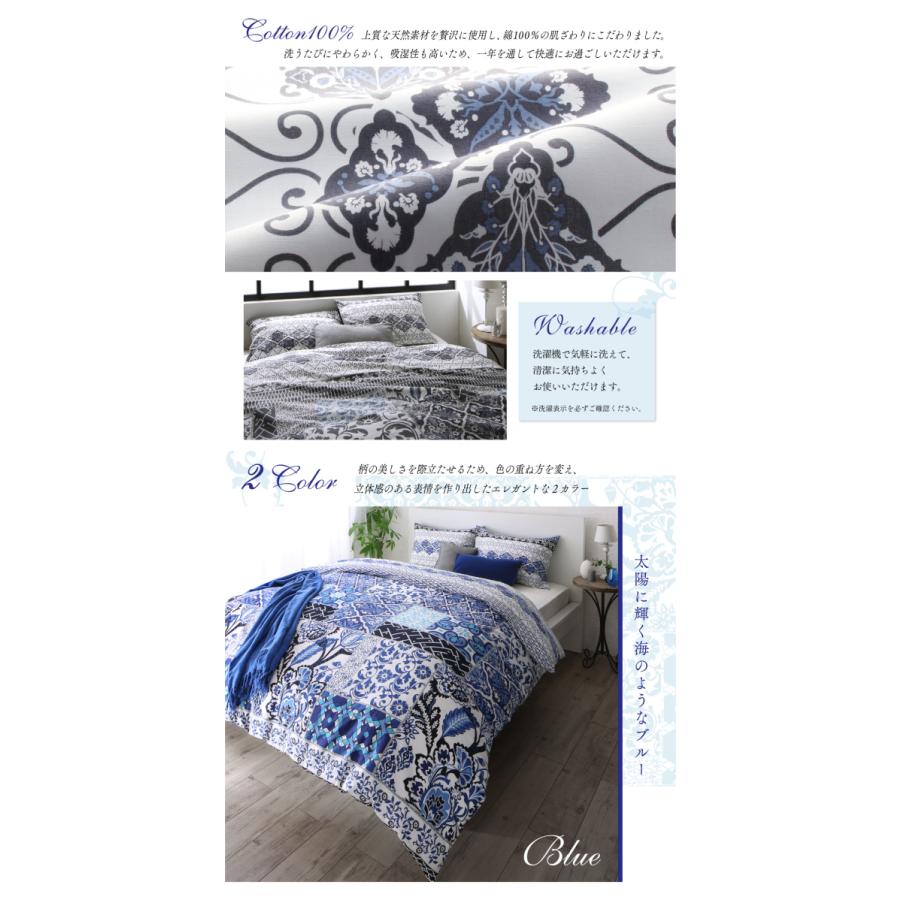 日本製 綿100% 地中海リゾートデザインカバーリング 〔nouvell〕ヌヴェル 布団カバーセット ベッド用 43×63用 セミダブル3点セット ネイビー