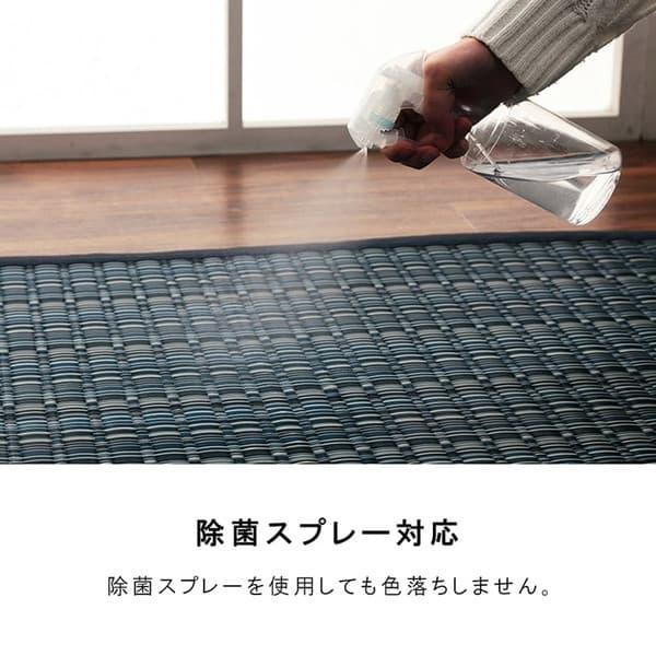 丈夫で汚れに強いポリプロピレンを使用したい草調のラグです。
