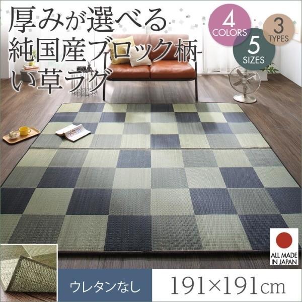 ラグ マット い草ラグ ウレタンなし 191×191 選べる 厚み 3タイプ 純国産 ブロック柄 おしゃれ