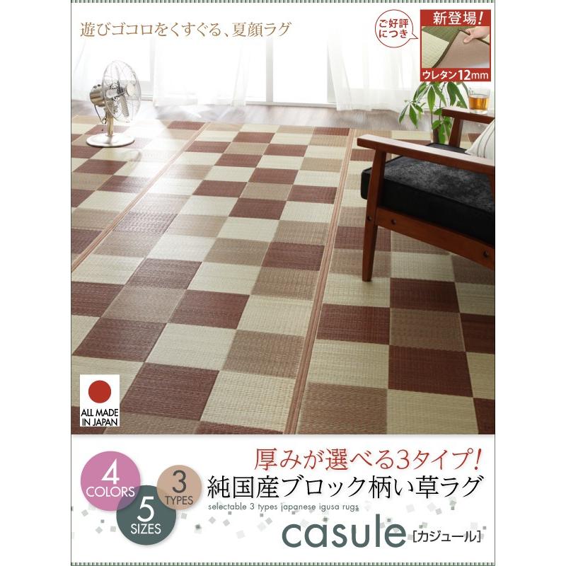 | ラグ マット い草ラグ ウレタンなし 191×250 選べる 厚み 3タイプ 純国産 ブロック柄 |