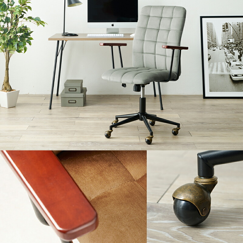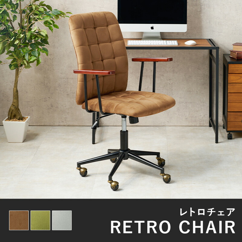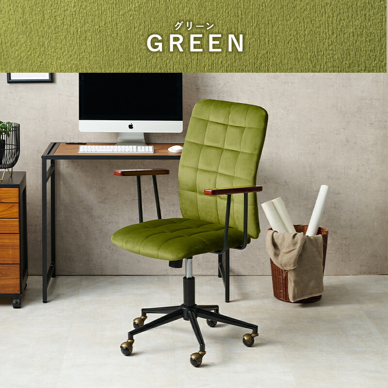 オフィスチェア パーソナルチェア チェア 椅子 オットマン 回転 キャスター付き ロッキング機能 1人用 エレガンス 肘付き リビング 疲れにくい レトロ リラックス 肘掛け 一人掛け イス ブラウン グリーン グレー 母の日高級感のあるベロア調の生地に木肘がアクセントとなる、レトロな雰囲気のオフィスチェア