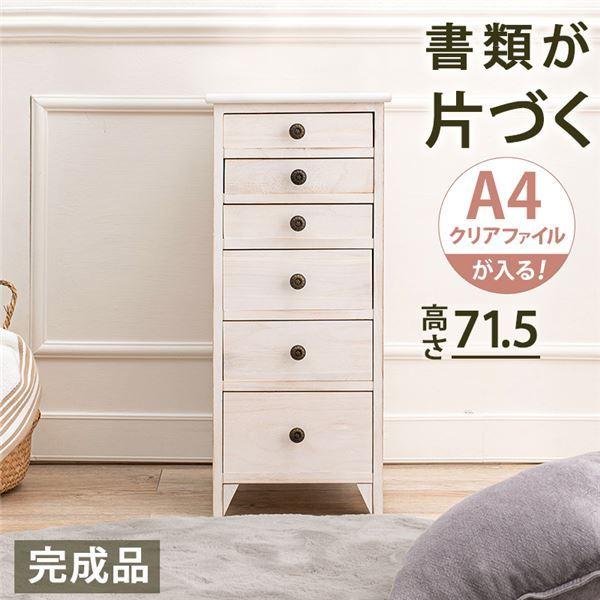 チェスト 収納棚 約幅31×奥行38.5×高さ71.5cm アンティークホワイト 木製 桐材 スリムチェスト 完成品 リビング〔〕