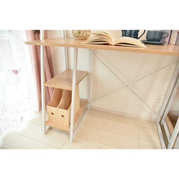 パソコンデスク/学習机 〔幅102cm ホワイト×ナチュラル〕 スチール アイアン 組立品 〔リビング 在宅ワーク〕〔〕