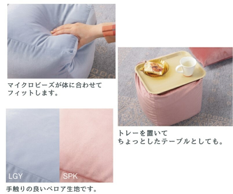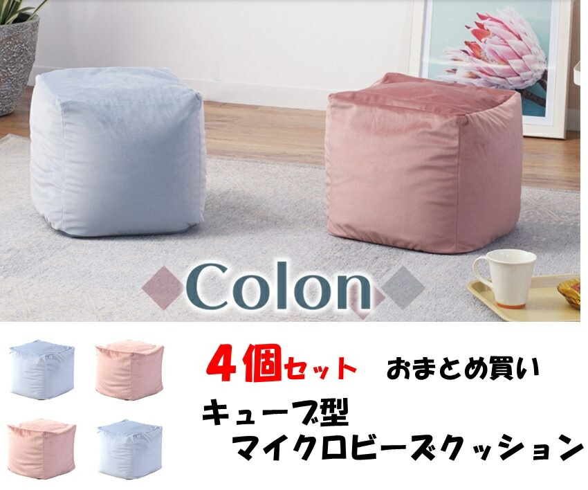| おまとめ買い 4個セット マイクロビーズクッション コロン colon カラー:ライトブルー ピンク 30cm角(W30×D30×H30) |