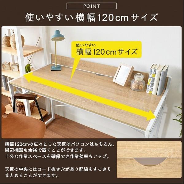 モダン パソコンデスク/学習机 〔ブラック×ナチュラル〕 幅120cm コード穴 アジャスター付 スチールフレーム 〔リビング〕〔〕