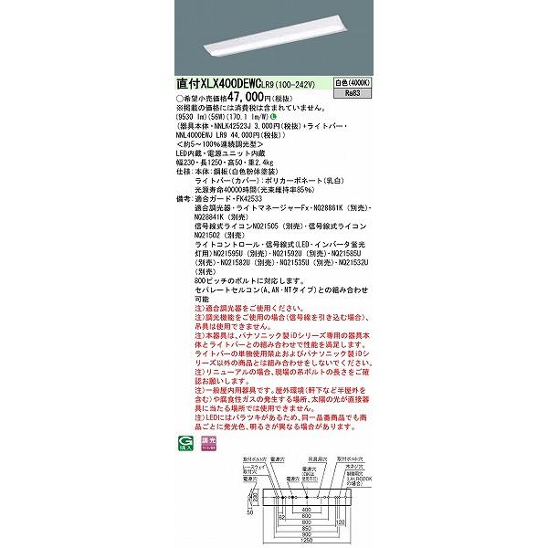 XLX400DEWCLR9 パナソニック ベースライト 富士型 W230 LED 白色 調光 (XLX400DEWJLR2 後継品)