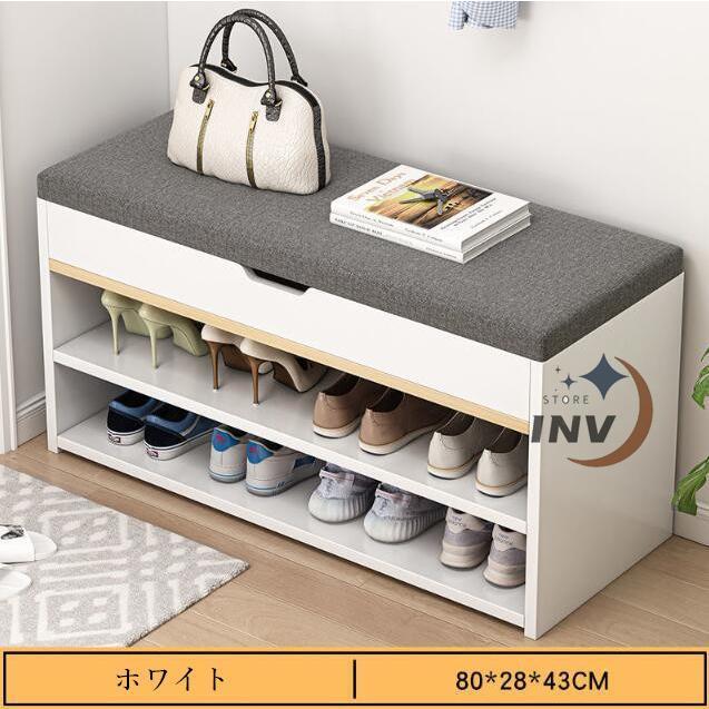 シューズラック 玄関ベンチ スツール 幅80cm×28cm 高さ43cm 省スペース 靴収納 収納ラック 椅子 収納 おしゃれ 玄関収納 玄関 靴箱 スニーカー