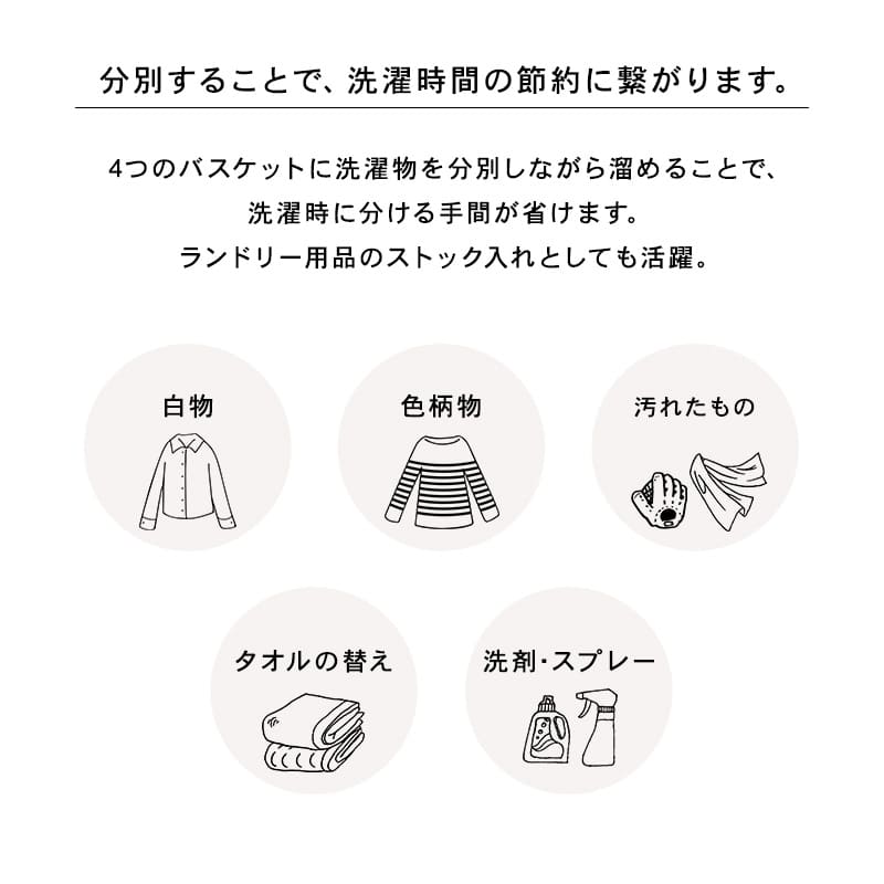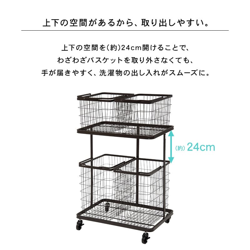 ランドリーラック 4BOX ダブル ランドリーバスケット 2段 4カゴ 洗濯物入れ 縦型収納 スチールラック ランドリー収納 ランドリーワゴン 洗濯かご 2段 おしゃれ シンプル 脱衣所 洗面所 ラック キャスター 母の日ランドリーラック 快適なランドリー空間を作り出す 色柄物や汚れた洗濯物を分けて溜められるランドリーワゴン。バスケットは持ち運べて便利。"}