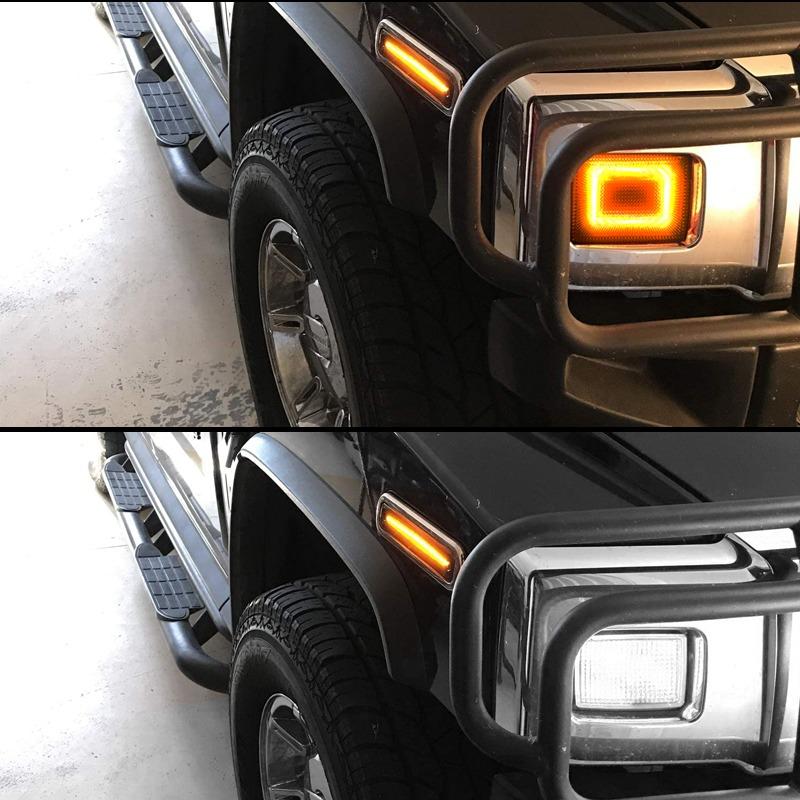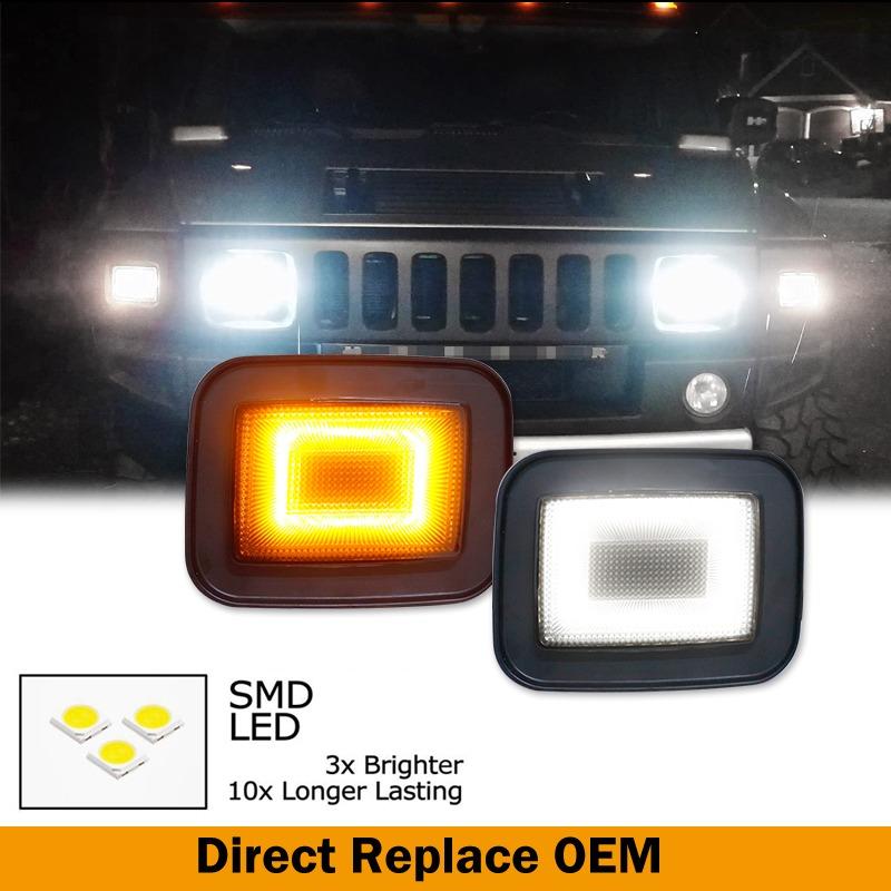 ハマーH2 SUV SUT 2003-2009 フロントバンパーリフレクター アンバーターンシグナルライト ホワイトデイタイムランニングライト 2個