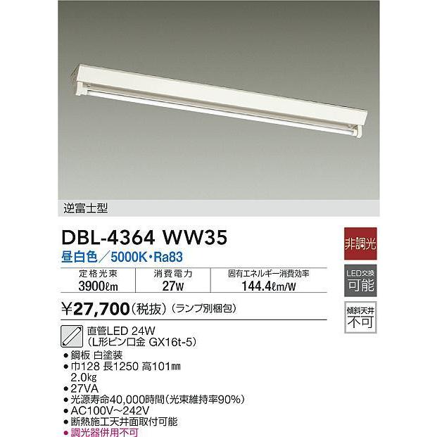 DBL-4364WW35 直管LEDベースライト LED交換可能 直付 逆富士型 3500lmクラス 高出力タイプ 昼白色 非調光 40W形×1灯相当 大光電機 照明器具 天井照明