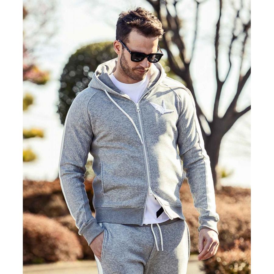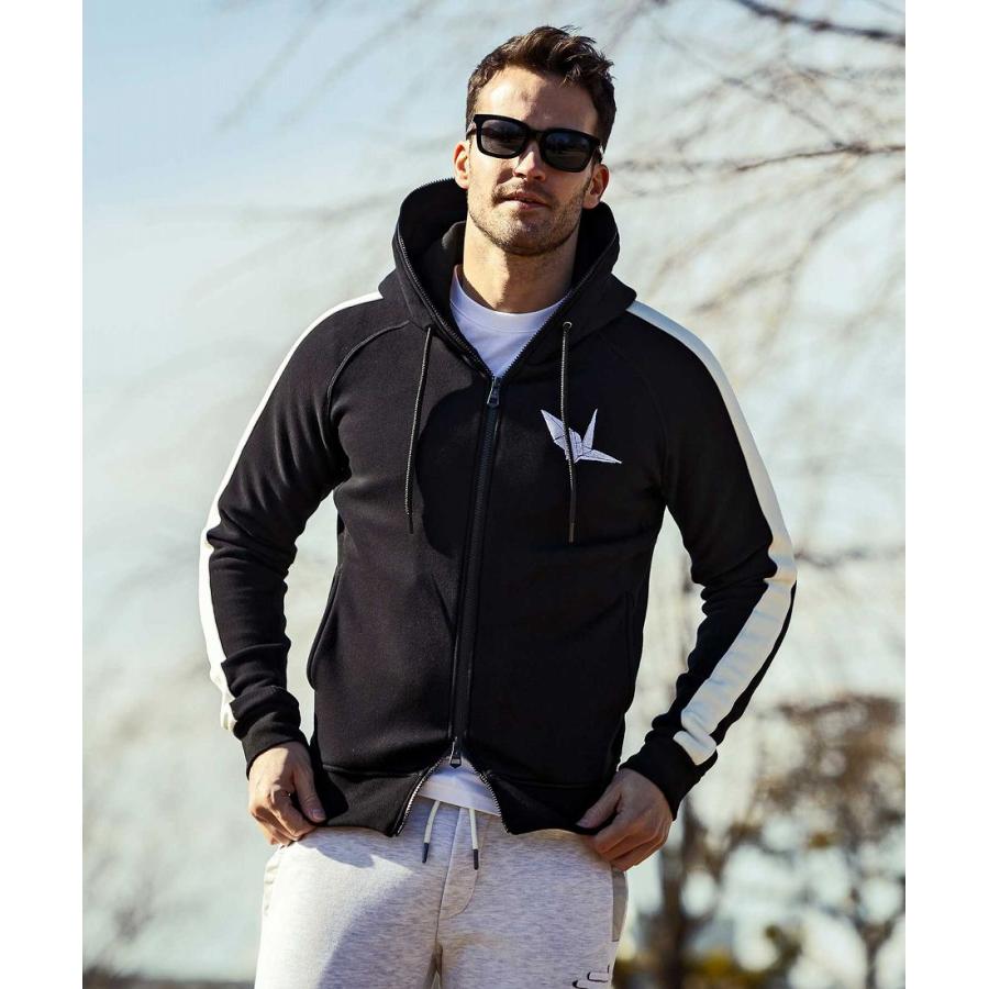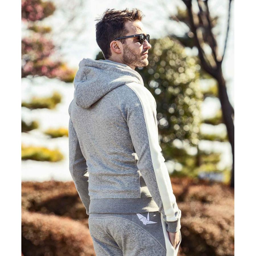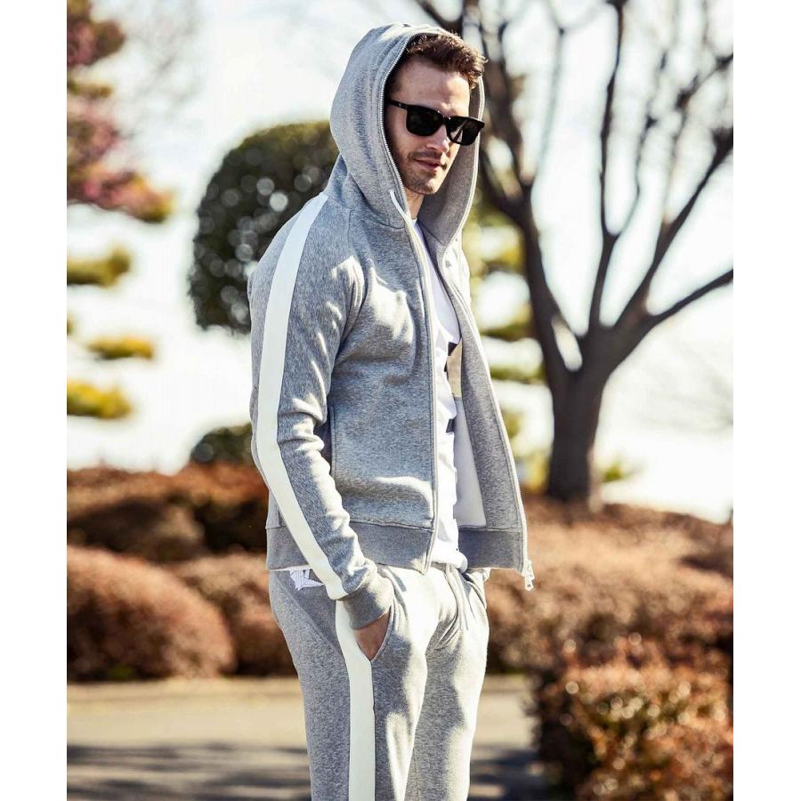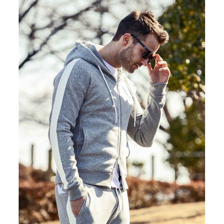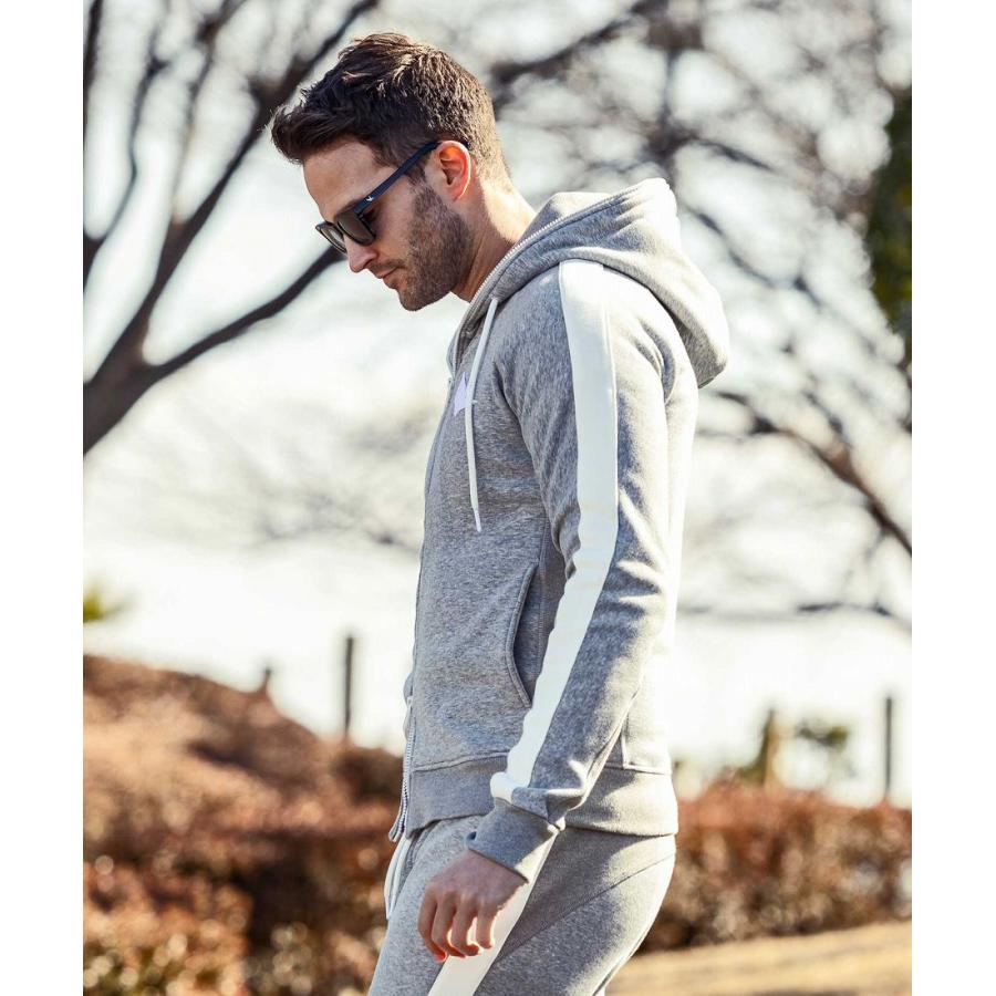 太めに入った袖ラインがスポーティな印象を盛り上げるジップアップパーカー。