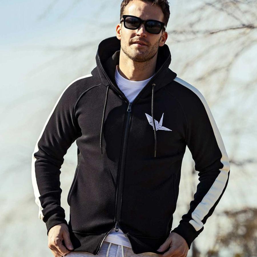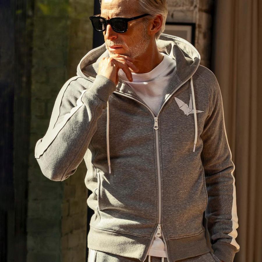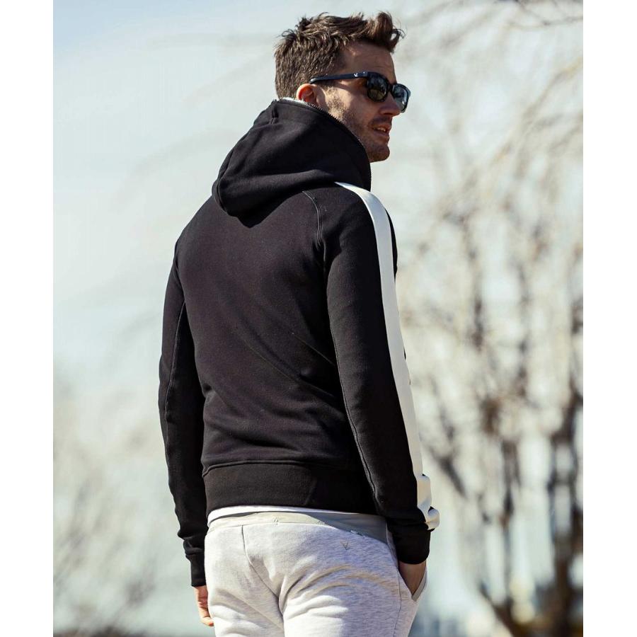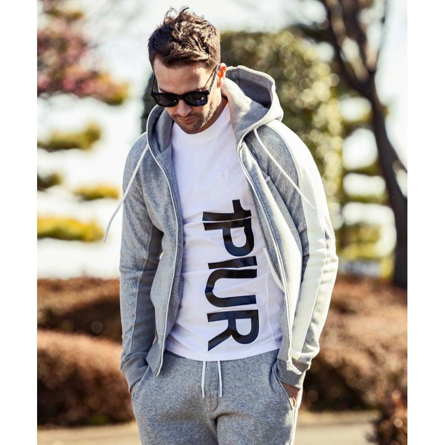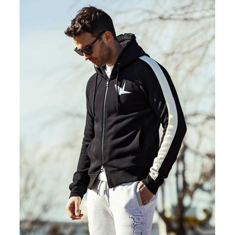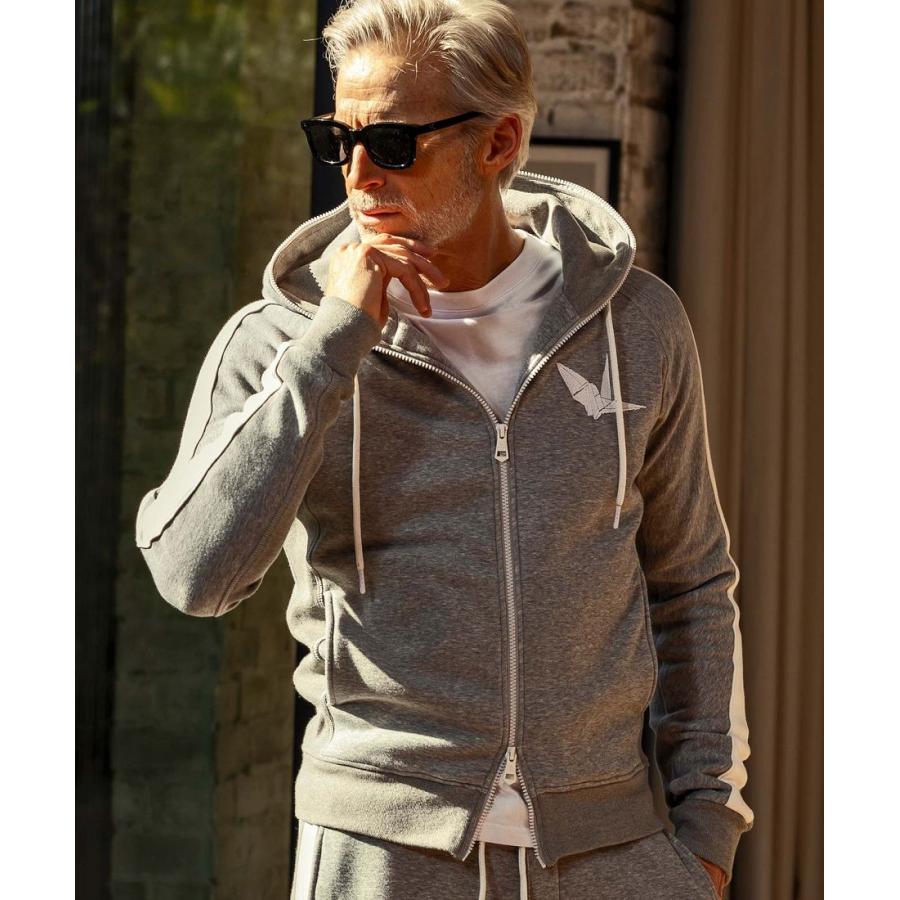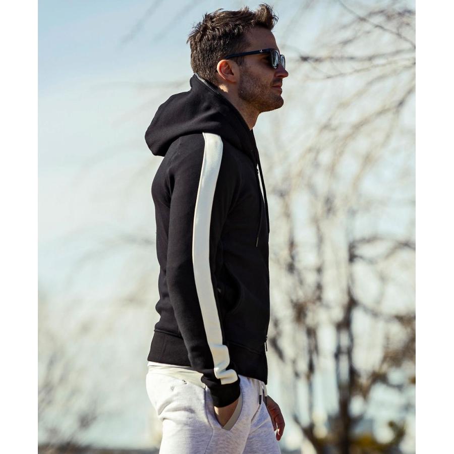 太めに入った袖ラインがスポーティな印象を盛り上げるジップアップパーカー。