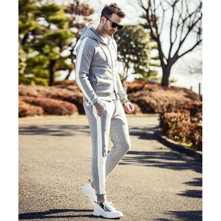 同生地の⇒パンツと合わせれば大人のスポーツMIXスタイルの完成です。
