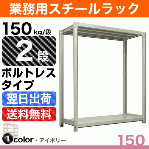 スチール棚 幅90×奥行45×高さ180cm 2段 単体 150kg/段 ボルトレス 重量:23kg