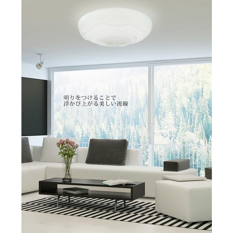 明りをつけることで浮かび上がる美しい流線、やさしく部屋全体を照らします。
