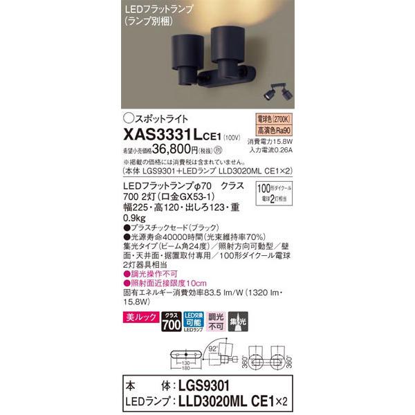 パナソニック「XAS3331LCE1」(LGS9301ランプは2個LLD3020MLCE1)LEDスポットライト【電球色】<集光/調光【要工事】LED照明※メーカー定価の変更の為2023年4月1日により画像の定価と異なります。