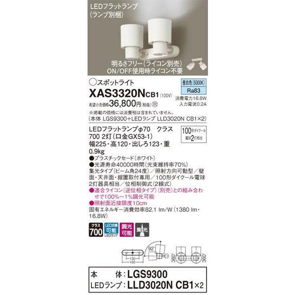 パナソニック「XAS3320NCB1」(LGS9300ランプは2個LLD3020NCB1)LEDスポットライト【昼白色】<集光/調光可能>ライコン別売【要工事】LED照明※メーカー定価の変更の為2023年4月1日により画像の定価と異なります。