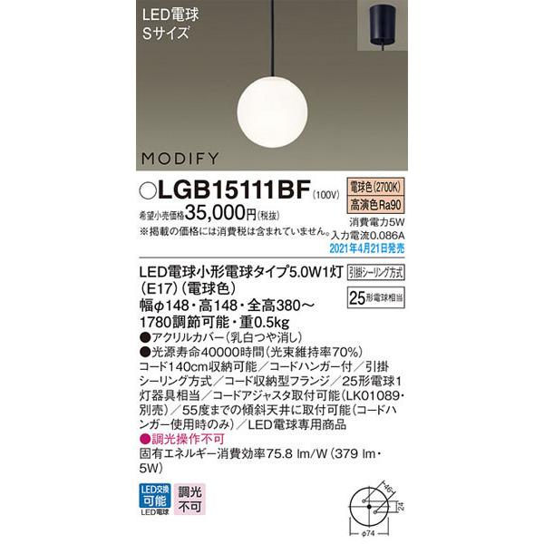 パナソニック「LGB15111BF」LEDペンダントライト【電球色】(引掛けシーリング用)<LED電球交換可能/調光>LED照明※メーカー定価の変更の為2023年4月1日により画像の定価と異なります。