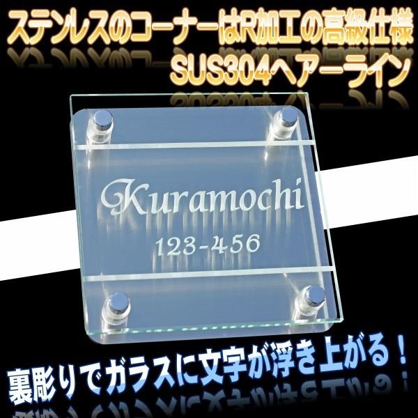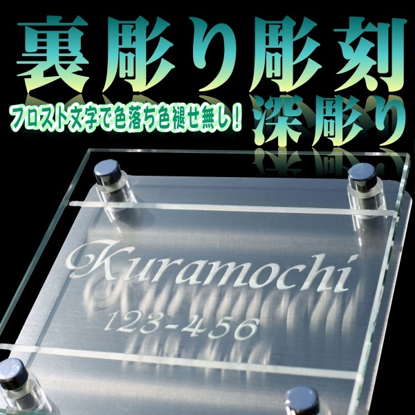 表札 ガラス表札 (裏彫り表札)マンションや機能門柱に130角の人気表札
