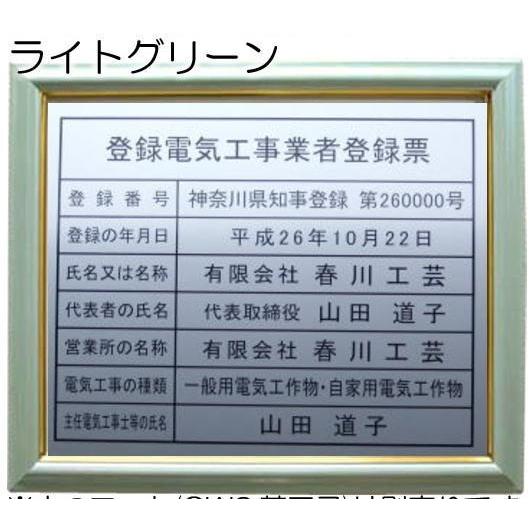 登録電気工事業者登録票 ライトグリーン額入り・板面はシルバー /登録電気工事業者登録票 お洒落な 登録電気工事業者登録票 額入 登録電気工事業者登録票