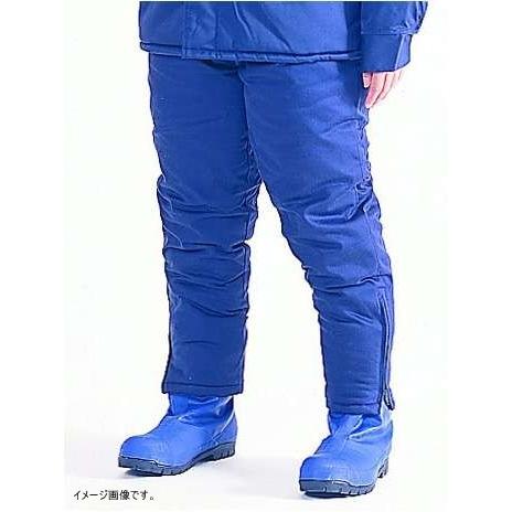 メーカー品番_サイズ_ズボン丈(cm)_胴廻り(cm)_股下(cm)_裾(cm)_質量(kg):MB-102_3L_112_110_79_36_1.3表生地:綿100%裏生地:アクリル100%厚地キルティング●-60℃対応タイプです。●冷凍冷蔵倉庫・冷凍船の庫内作業用に最適です。※長靴は、(SNG31)参照