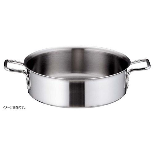 サイズ表示(内径cm)_外径×深さ(mm)_容量(L)_質量(kg)_板厚(mm)_底径(mm):24_255×80_3.5_1.6_2.0_200トリノシリーズ[IH](ステンレス三層鋼 業務用電磁調理器対応鍋)パワー入力、熱伝導、熱効率にすぐれた材質・構造鍋全体で温める為、焦げ付きにくく煮物・カレー・シチューには最適!平ビス使用で洗浄ラクラク、ハンドルはプロ向き!●新開発三層鋼でIHクッキングヒーターに最適! プロの料理人も絶賛! 熱伝導の良いアルミを保温力のあるステンレスではさむことによって、 軽くて耐久性に優れた理想的な業務用鍋が完成!●IHクッキングヒーターに対して高い熱効率と早い立ち上がりに優れています。 鍋全体が均一に温まり温度ムラが少なく理想的な対流を起こすので、ソー ス、シチューも美味しく出来ます。●ステンレス、アルミ、ステンレス三層鋼(アルミクラッド鋼)の業界初の特殊 加工により、軽量化と大型鍋の製品化を実現。耐蝕性も抜群でソースの変 色もありません。●ビスは業界初の平ビスを使用。内面に突起がない為使いやすく、洗浄も 簡単ラクラク。SUS304製なので耐食性・耐久性も抜群。●ハンドルはプロのアドバイスを参考に設計、丈夫で持ち易い形状です。 SUS304製で耐久性も抜群。本体は水切れが良く変形しにくい渕構造。●大型寸胴鍋から雪平鍋まで、充実のラインナップ!先進のトリノシリーズ。 業界初のステンレス・アルミ・ステンレス三層鋼!新開発三層鋼ステンレス(SUS304)アルミニウムステンレス(SUS430)