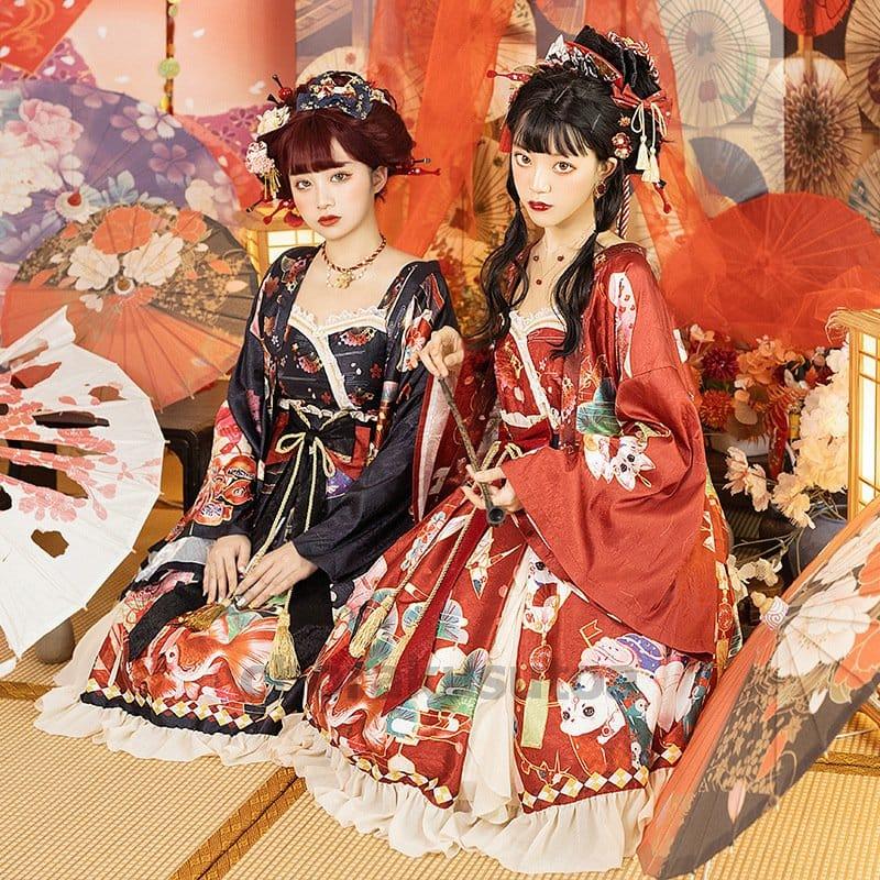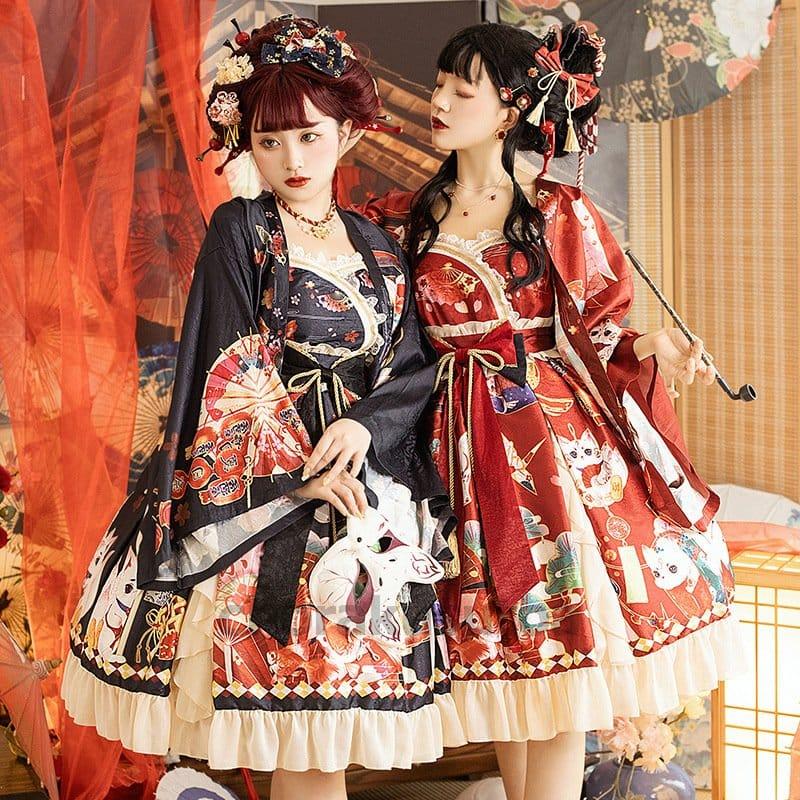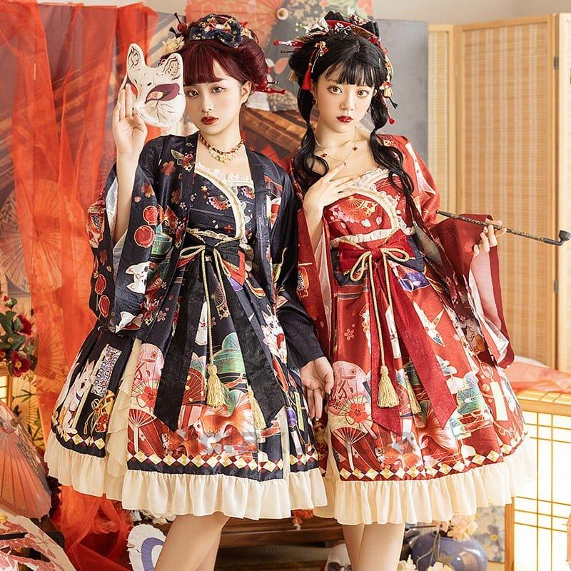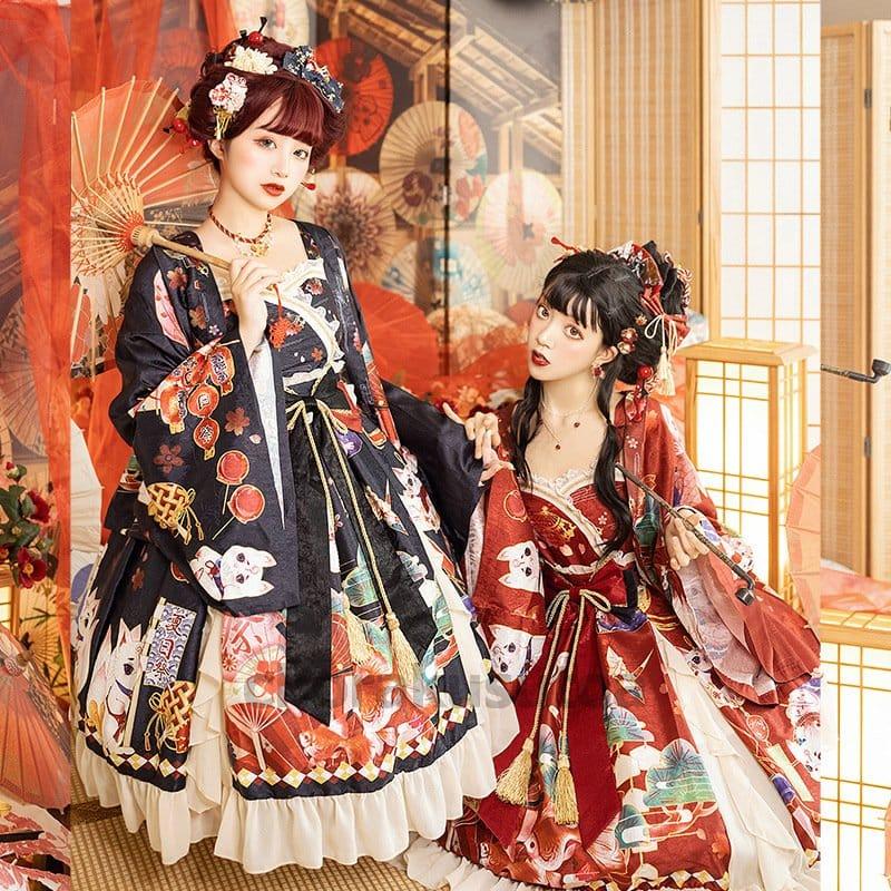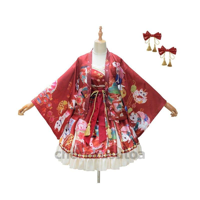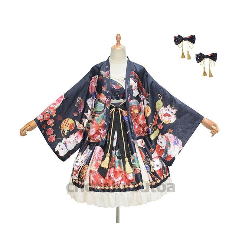 和風ロリータ ワンピース 羽織 豪華セット コスプレ 衣装 着物 和ロリ レディース 花魁 おいらん 巫女