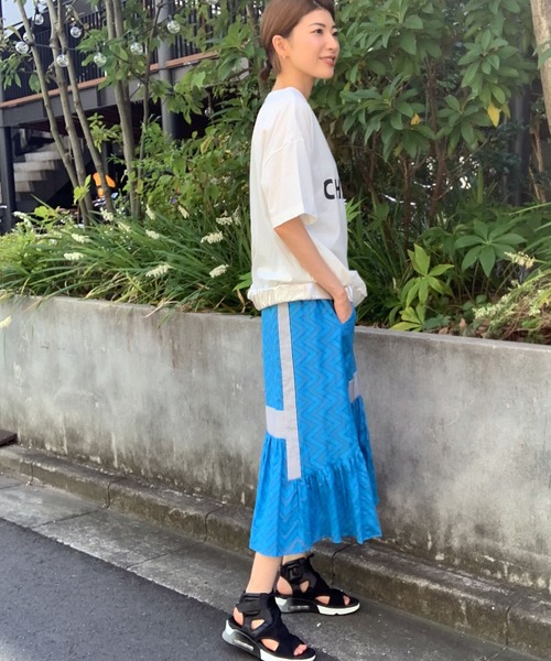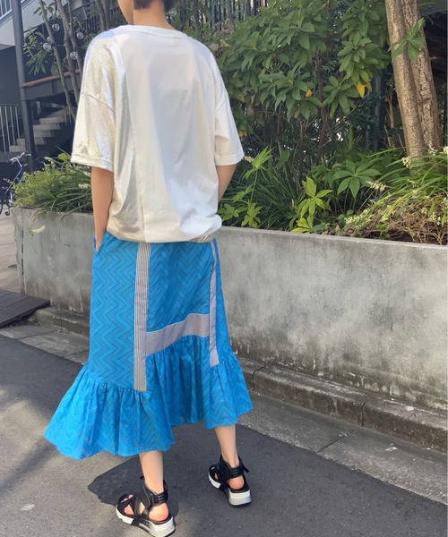 台形型の為、ヒップ回りはギャザースカートの様な広がりは無く、ティアードの甘さを抑えています。