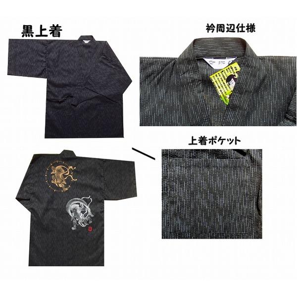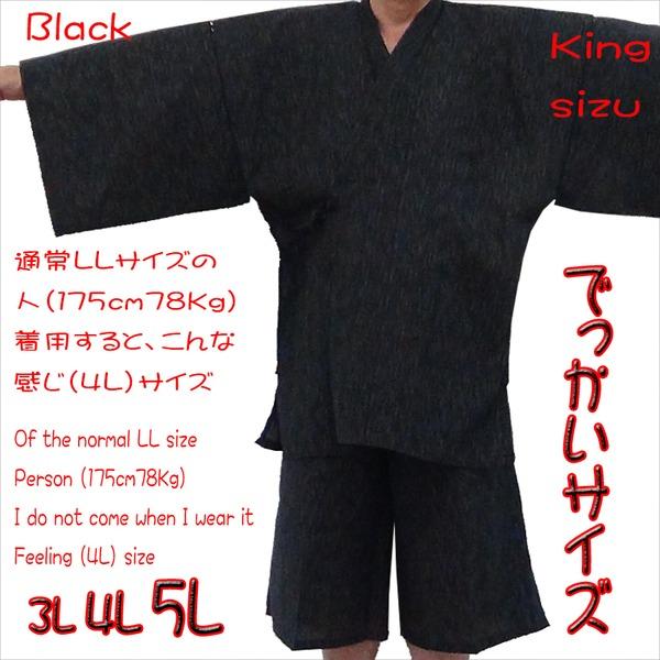 風神雷神の手書き絵・しじら織甚平 キングサイズ黒3L