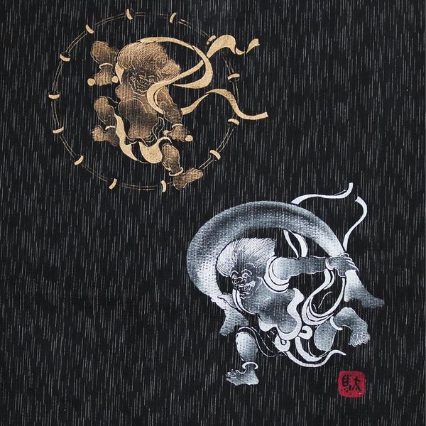 風神雷神の手書き絵・しじら織甚平キングサイズ