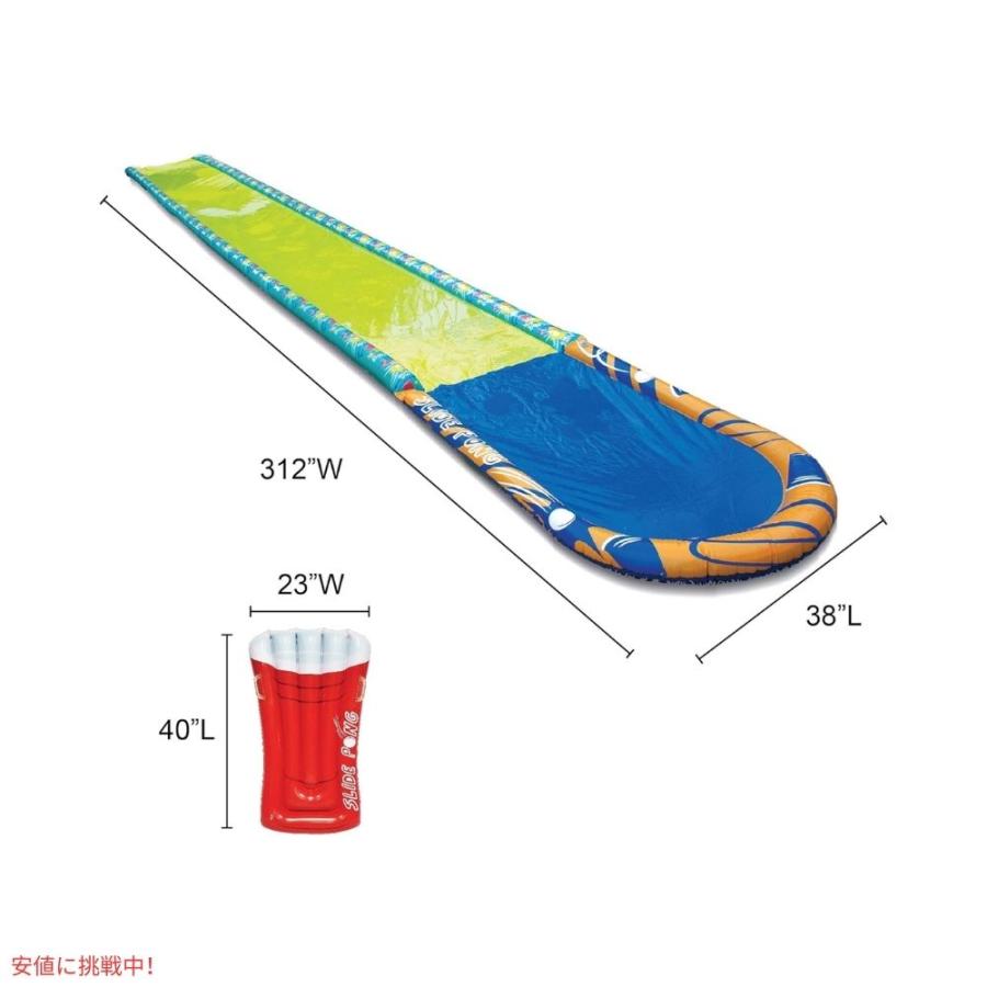 究極のパーティースライド!この超長い 26 フィートのスライドは、エアソフトで膨張したスライディング リングを利用して、究極のウェット アンド ワイルド チャレンジを実現します。巨大な 6フィート(約8m)のウォータースライド。10種類のスリッパーサマーゲームをプレイ: スライド & スタック、シュート & スコア、ピンボール ポンなど。内容:インフレータブルウォータースライド、パーティーカップ 4個、ポンボール 1個"}