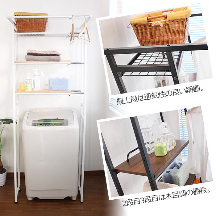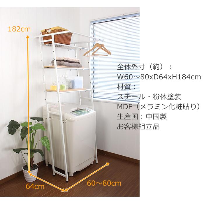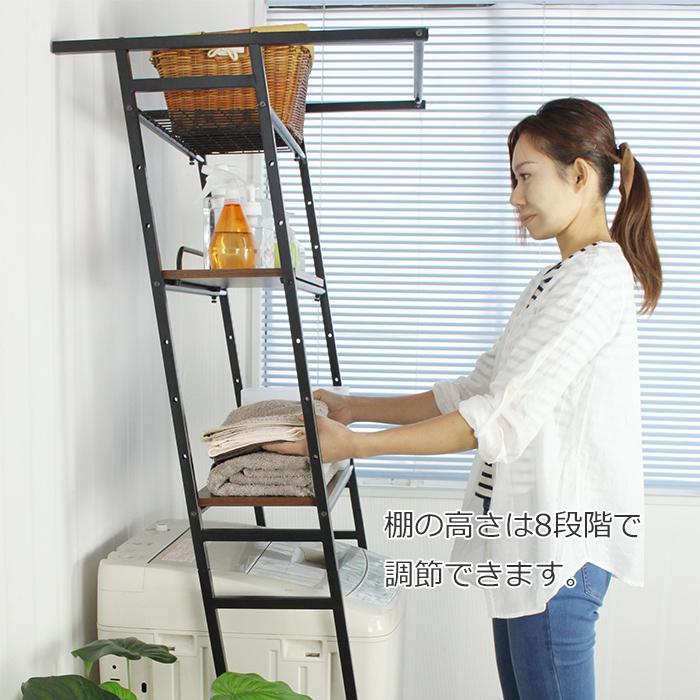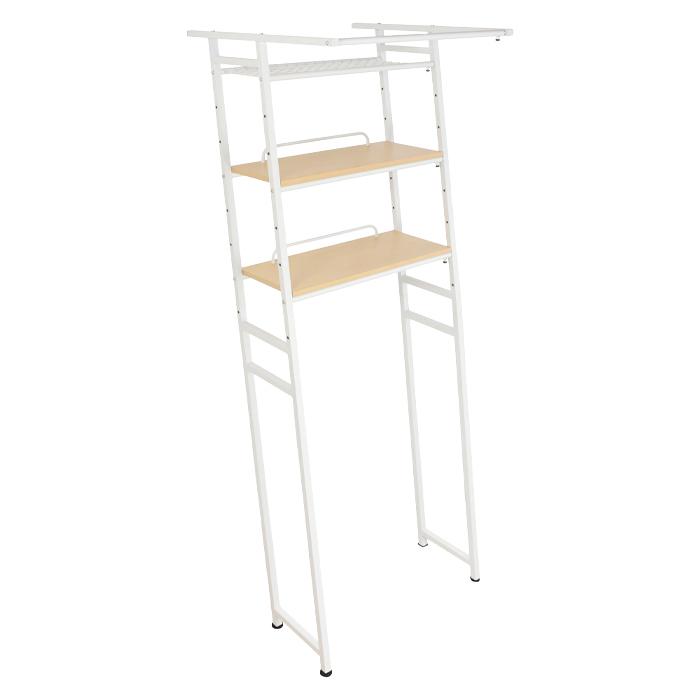 ランドリーラック 伸縮 立掛け式 ハンガーバー付き ランドリー収納 洗濯機ラック 洗濯機上収納 洗面所 脱衣所 ナチュラル EKT-1896NA