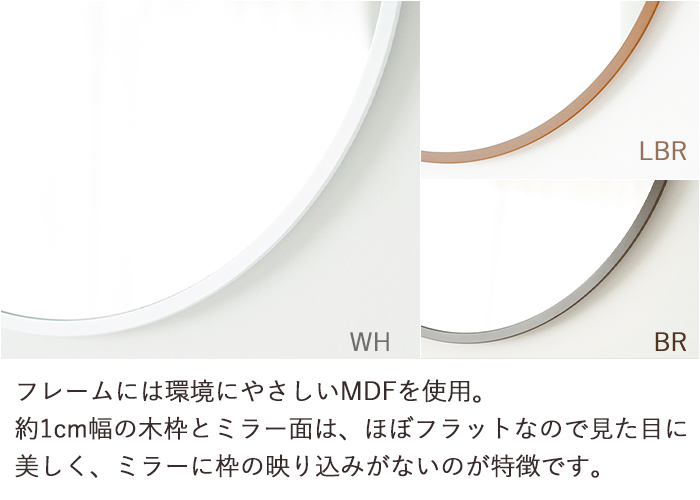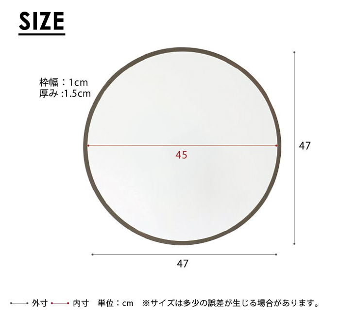 サイズ(約):幅470×奥行15×高さ470mm材質:繊維版、ミラー(3mm厚)塗装:ウレタン塗装重量:約2.5kg生産国:日本※飛散防止効果あり●裏面にある金具にフックで設置してください。壁側のフックはご準備していただく必要がございます。※紐は付属しておりません。-----------------[商品の説明]お部屋を優しい印象にする、丸型ウォールミラー。フレームには木目が無くなめらかな質感が特徴のMDF素材を使用。シンプルだけどカジュアルな雰囲気を演出してくれます。塗装には安全性の高いF☆☆☆☆のウレタン樹脂塗料を使用しており、ご注文を受けてから職人が丁寧にお作りします。そのため、納期はご注文から10日〜14日ほど頂戴いたしますので、ご了承の上、ご注文くださいますようお願いいたします。