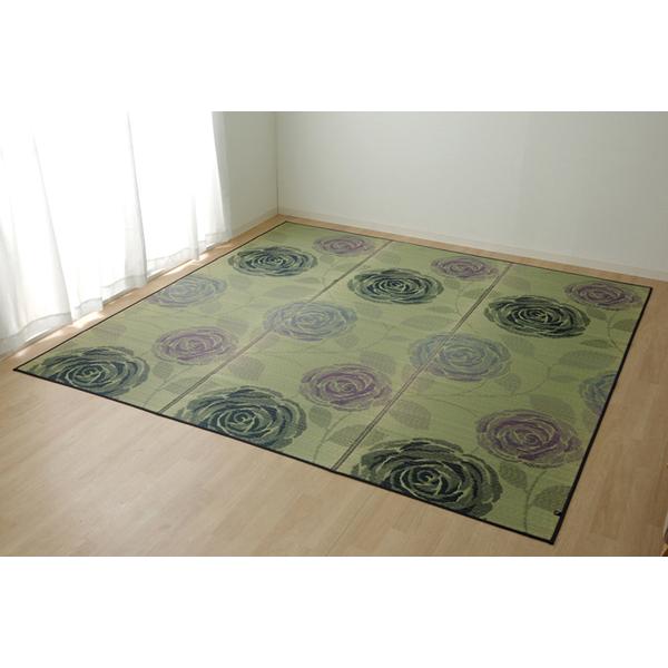 い草 花ござ ラグマット/絨毯 〔ローズ 江戸間3畳 約174×261cm〕 抗菌 防臭 消臭 調湿 日本製 〔リビング ダイニング〕〔〕