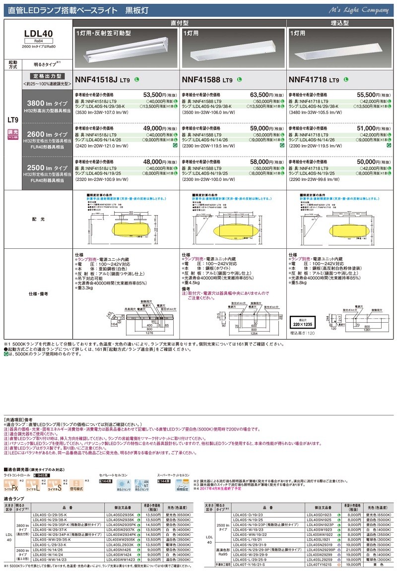パナソニック NNF41718 LT9 天井埋込型 黒板灯 直管LEDランプ LDL40 1灯用 連続調光 ライコン別売 ランプ別売 『NNF41718LT9』