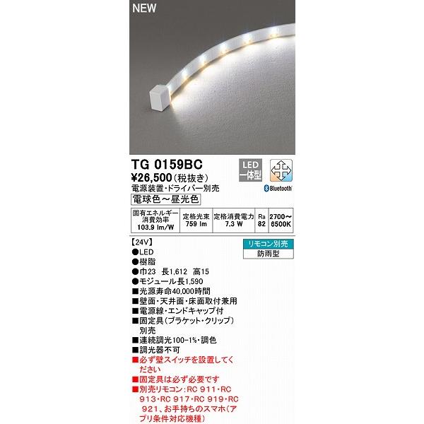 オーデリック 屋外用テープライト トップビュータイプ 1590mm LED 調色 調光 Bluetooth TG0159BC