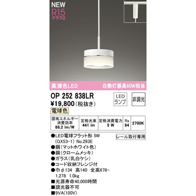 【決済・後払い決済】 高演色LED 白熱灯器具60W相当 OP252838LR 電球色 消費電力5W Ra94 ●LED電球フラット形 5W(GX53-1) No.293E ●(マットホワイト色)●鋼(クロームメッキ)●ガラス(乳白ケシ) ●コード収納フレンジ付 ●巾φ134 高140 全高678-1,278 1.0kg ■光源寿命40,000時間 ■調光器 レ-ル取付専用 その他メーカーへのお問い合わせはコチラ →