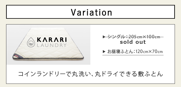 KARARI カラリランドリー 敷布団 お昼寝ふとんサイズ コインランドリー 丸洗い 丸ドライ 速乾性 回復性 耐久性 ホワイト ベージュ