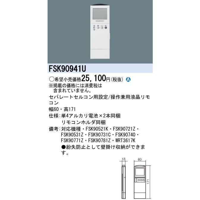【同一ストア内で税別15000円以上ご購入で送料無料(沖縄・離島など一部地域は除く) 】 施設用照明器具 パナソニック ベースライト FSK90941U 検索用カテゴリ363 【ベースライト】 【別売部品】セパレートセルコン用設定/操作兼用液晶リモコン