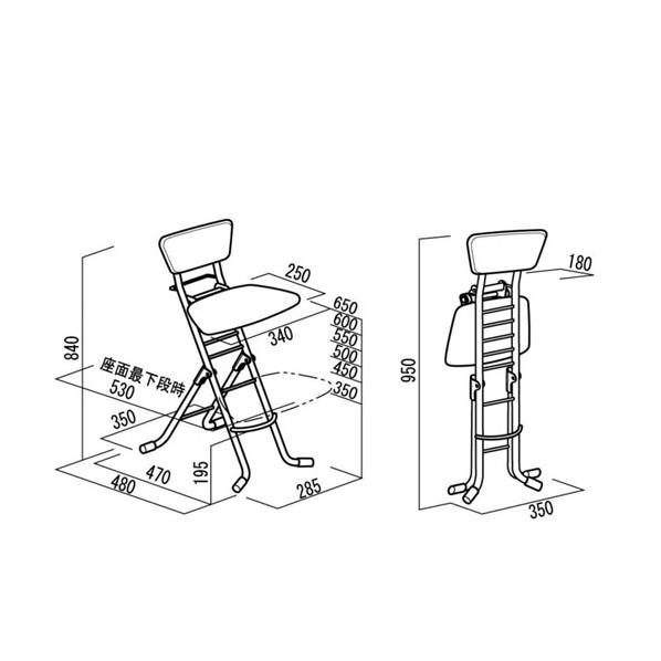 ●サイズW×D×H×SH(mm):350×480×840×350〜650