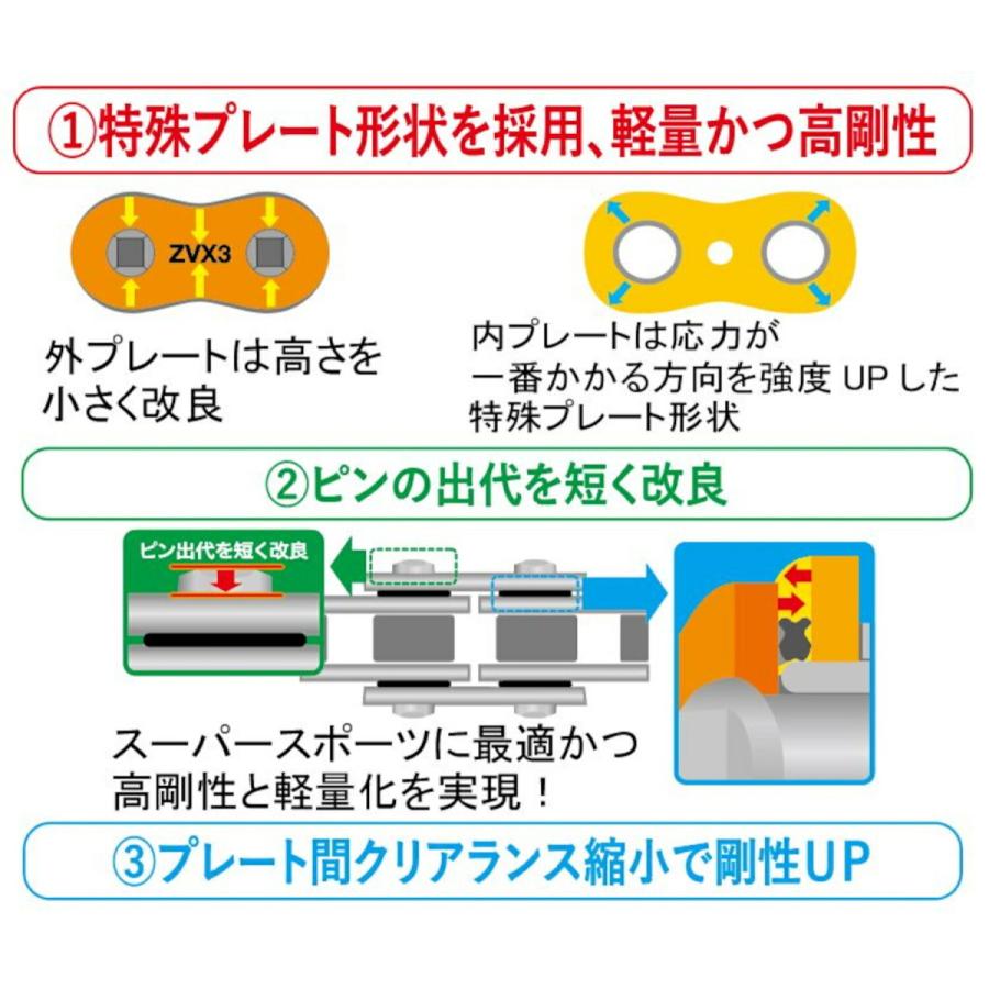 最新の「NXリング」を採用しており、低フリクションで長寿命のQXリングより更に耐久性は高く、シールは薄く、チェーンの剛性が向上しています。