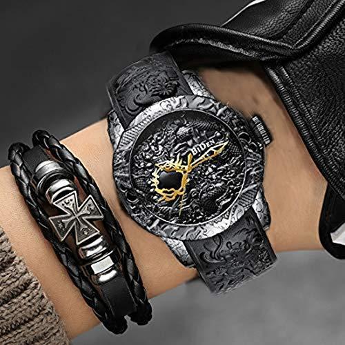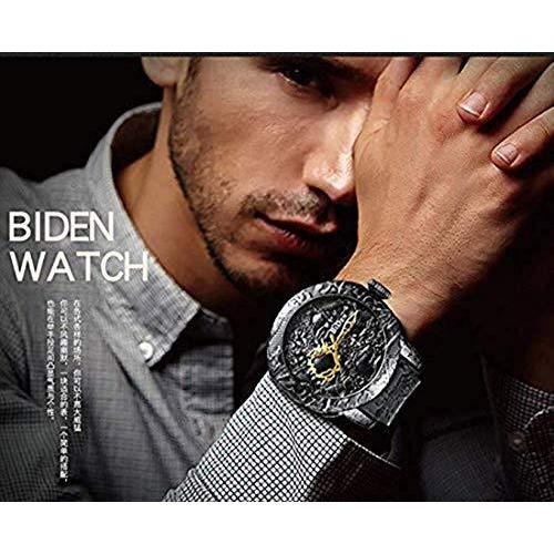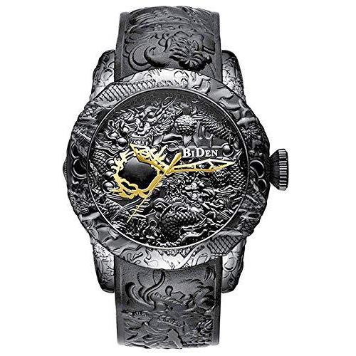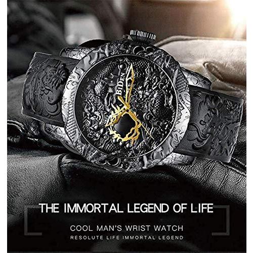 ドラゴンウォッチ メンズ 3D刻印 ビッグフェイス ゴールドウォッチ ブラック 並行輸入