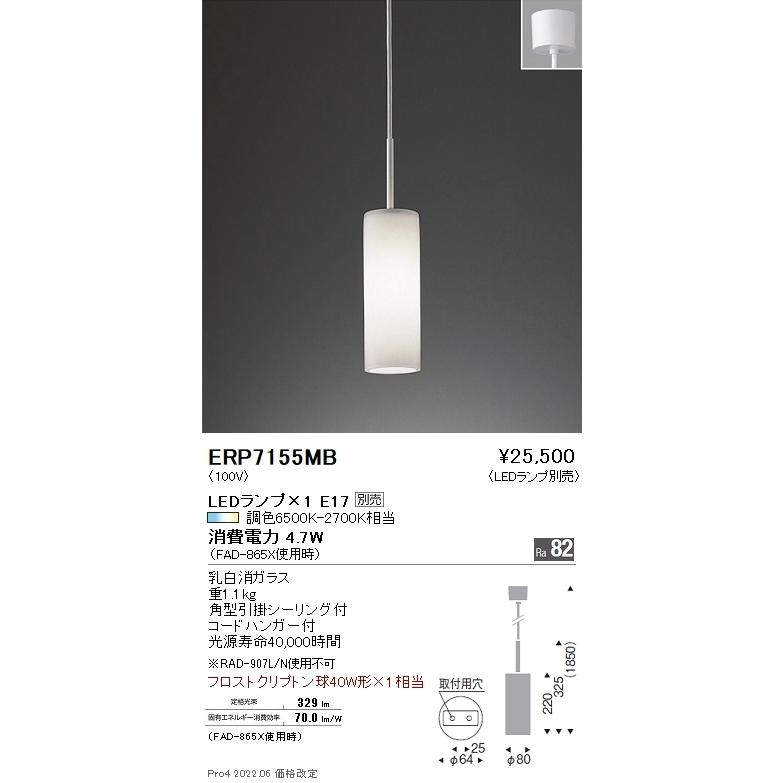 ERP7155MB 遠藤照明 ペンダントコード吊り 引掛シ−リングタイプ【ランプ別売】