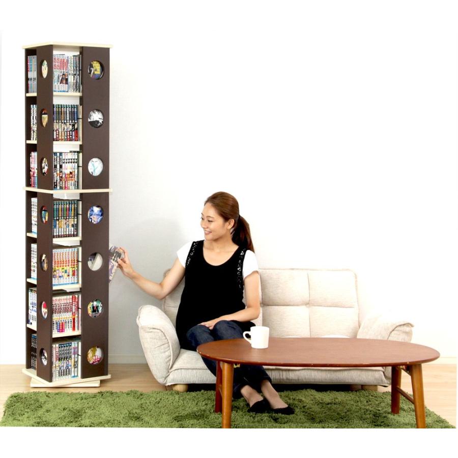 本棚 書棚 7段 飾り棚 棚 ラック 大容量 収納 コミック マンガ 省スペース おしゃれ モダン 木製 回転式 回転 コミックラック 在宅ワーク おもちゃ収納