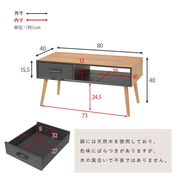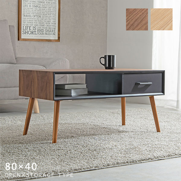 引出付きセンターテーブル 80×40 MT-6355 [収納付きリビングテーブル ローテーブル] /同梱・き