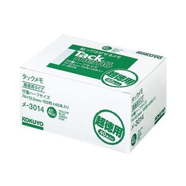 (まとめ)コクヨ タックメモ(超徳用・付箋タイプ)ハーフサイズ 74×12.5mm 4色ミックス メ-3014 1パック(40冊)〔×5セット〕[21]