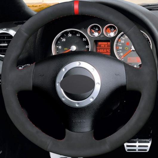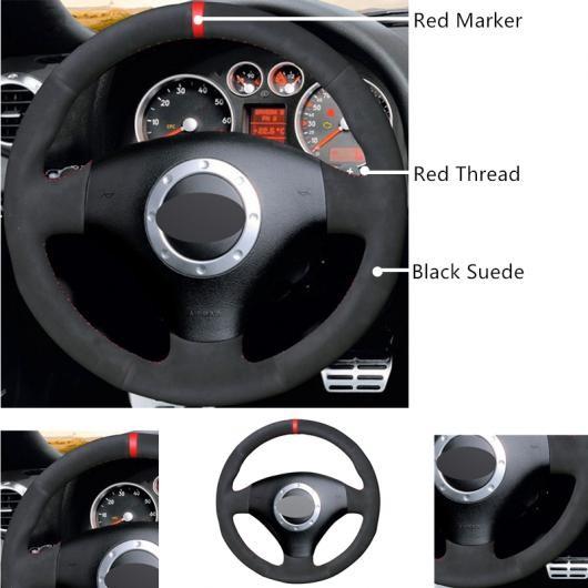 ステアリングホイールカバー 編み上げタイプ ブラックスウェード 適用: アウディ A2 8Z A3 8L スポーツバック A4 B6 ブラック 糸・レッド 糸 AL-FF-0720 AL
