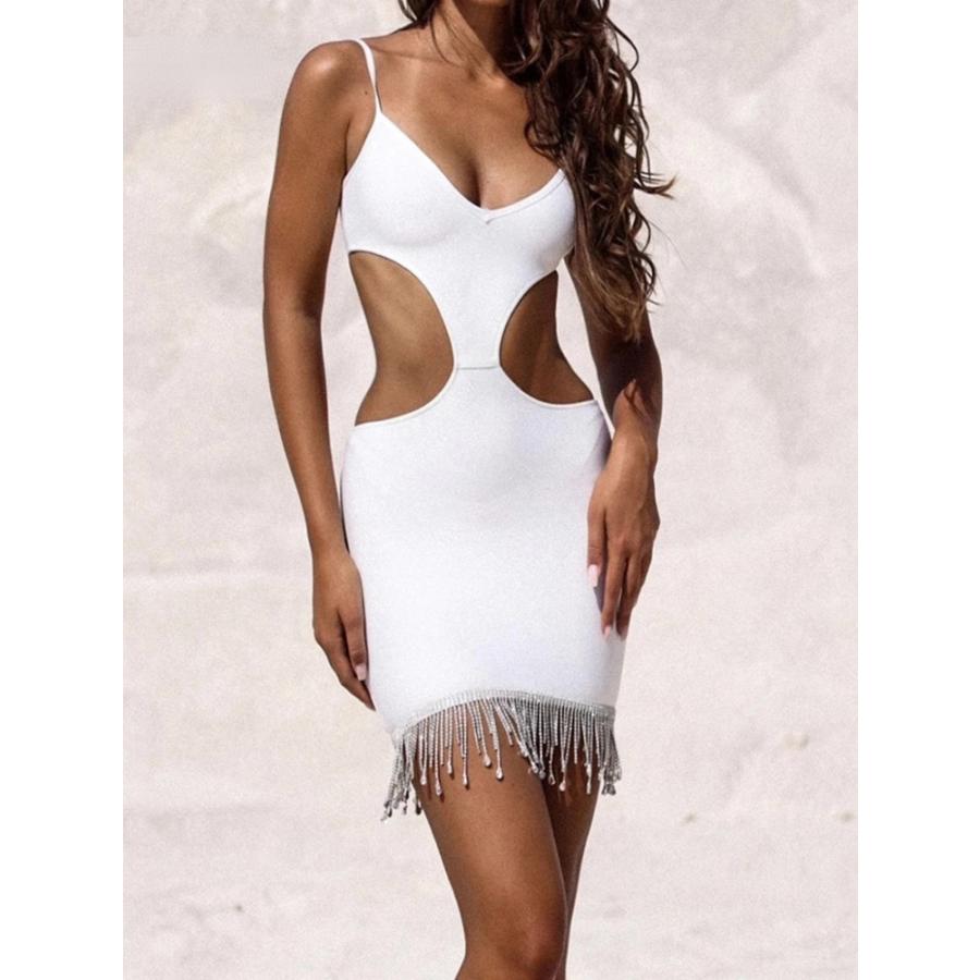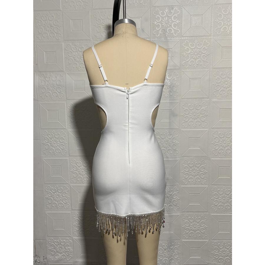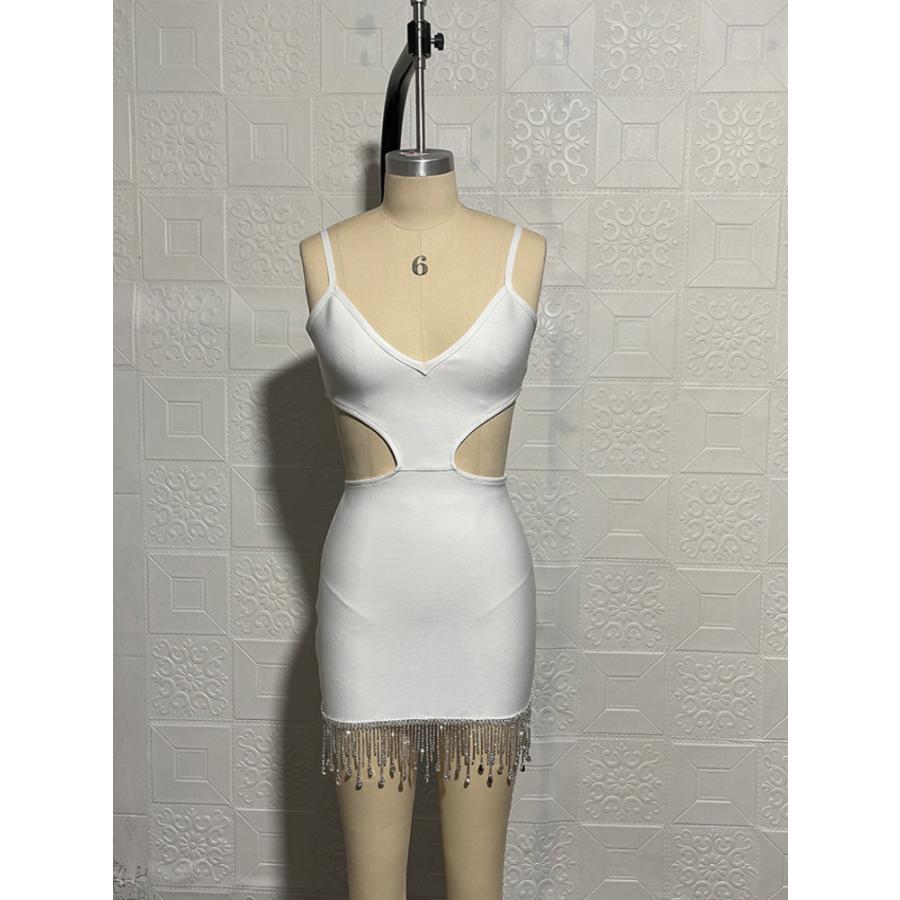 バンテージ ボディコン ドレス ラインストーン Vネック ストラップ レディース