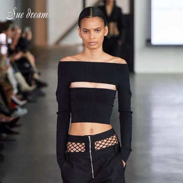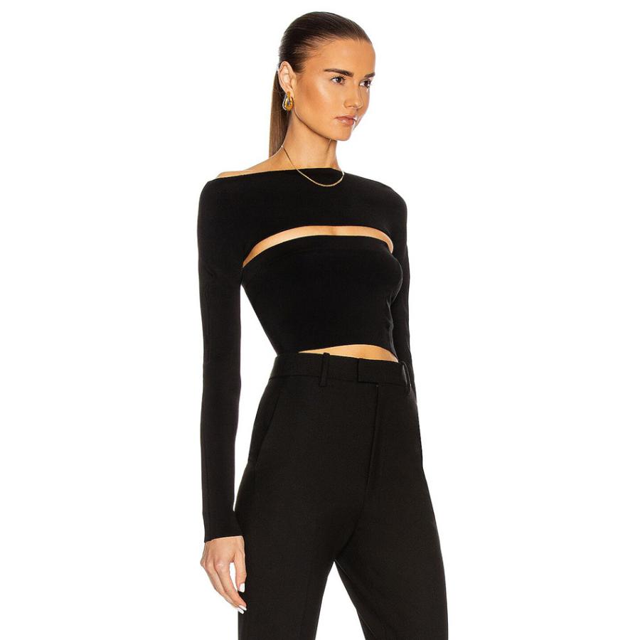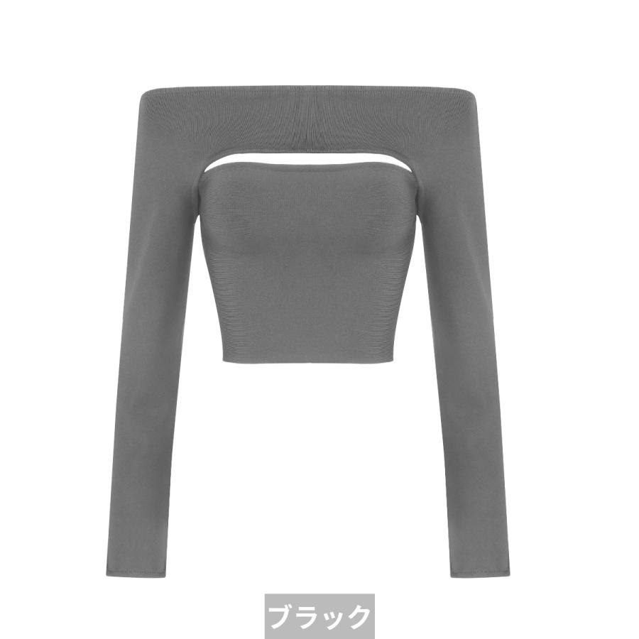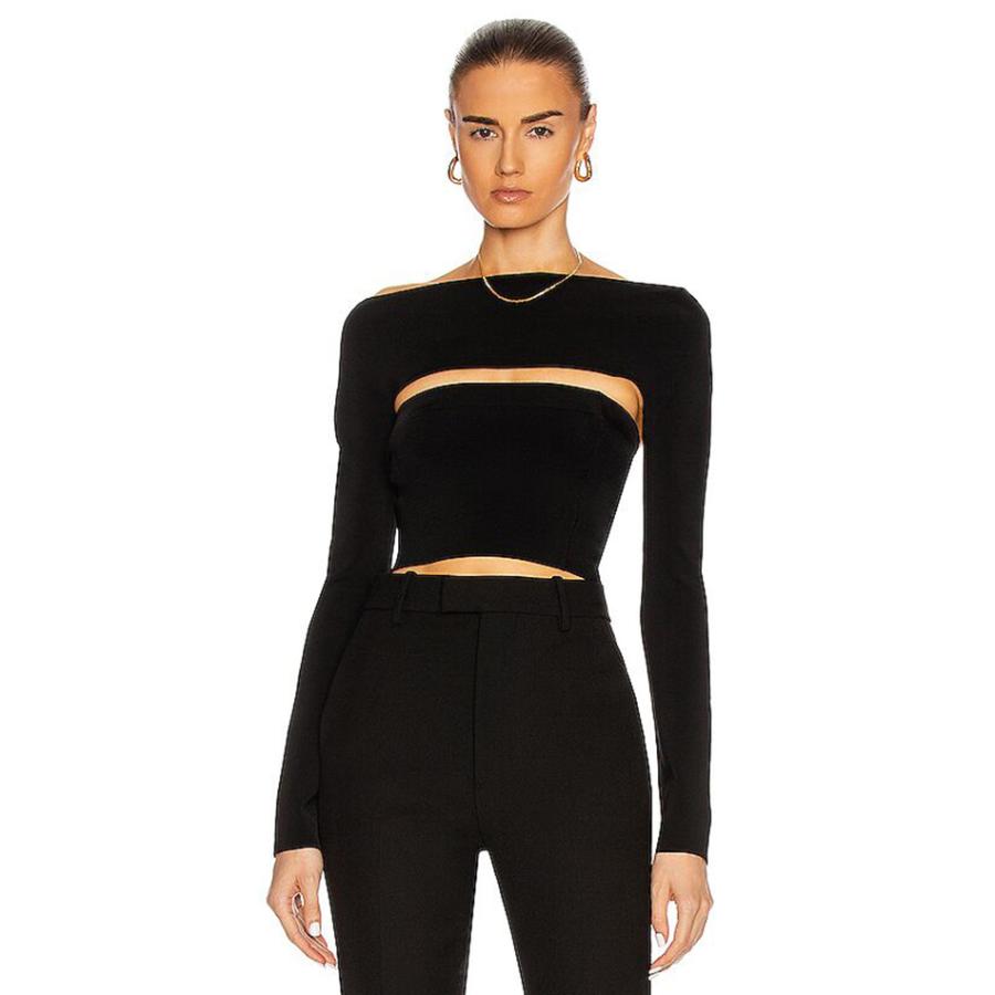 バンテージ ボディコン トップス 黒 ブラック ロング 長袖 ストラップ セクシー クロップ カジュアル レディース