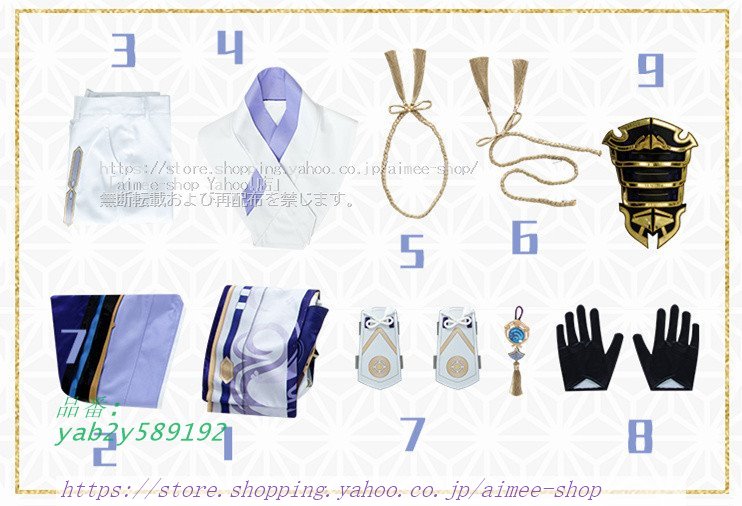 【品番】YAB2Y589192 ERYJCOS23▲納期:基本的に7?10日以内のお届け(延期の場合、別途ご連絡)▲材質:ポリエステル▲生産地:PRC▲状態:新品未使用▲内容品:セットのまま(セット以外のお品は付属しておりません) 関連キーワード 社奉行神里家当主神里綾人 コスチューム イベント ハロワイン 文化祭○使用上の注意事項○※ご購入後のキャンセル・お届け先変更などはお受けできません。※仕様は改善の為に予告なく変更する場合があります。※ディスプレイ画面等の環境上、写真と実際の商品の色とは多少違う場合がございます。※海外輸入商品により、軽い汚れ ダメージ等がついている場合がございます。○以上、ご同意の上ご購入ください!○ 二月鏡 原神 コスプレ 神里 綾人 コスプレ衣装 ウィッグ別売 かみさとあやと 仮装 ERYJCOS22 若 コスチューム 変装 文化祭"}